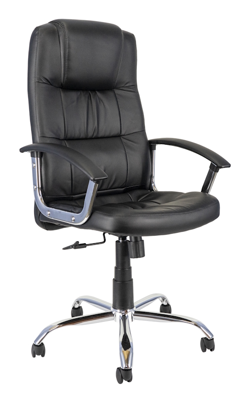 В стандартную комплектацию входит: Подлокотники из хромированной стали с мягкими накладками, пятилучие из хромированной стали, полиуретановые ролики. Механизм качания: топ-ган с фиксацией в рабочем положении и регулировкой усилия качания. Обивка: высококачественная экокожа.
