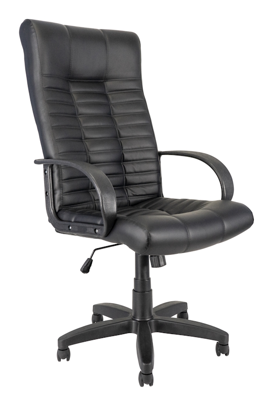 Сиденье и спинка офисного кресла КР26 выполнены из экокожи повышенной прочности, что гарантирует долговечность.