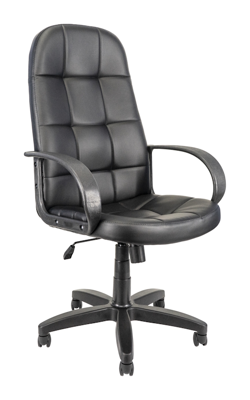 Сиденье и спинка офисного кресла КР45 выполнены из экокожи повышенной прочности, что гарантирует долговечность.